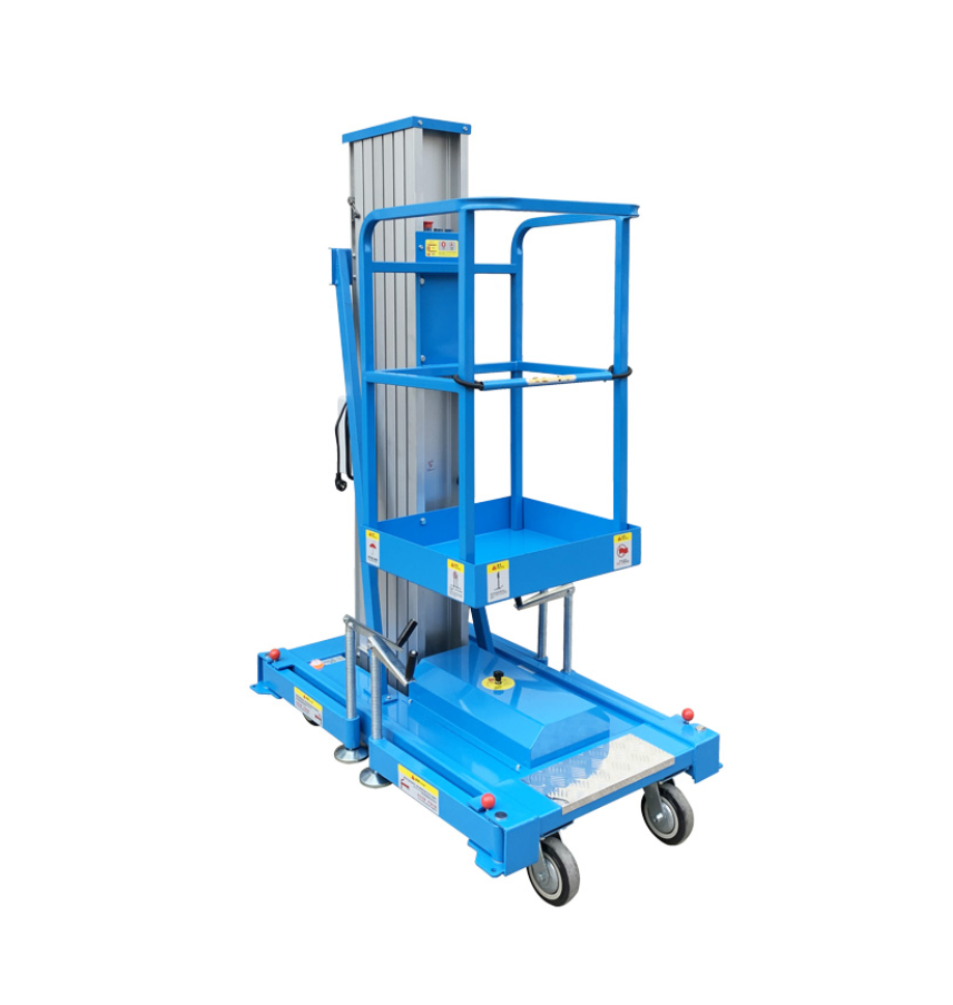 | 铝合金高空作业平台 | 单桅 | GTWY6-100 | 6 | 7.7 | 125 | 0.6*0.55 | 220V/0.75 | 280 | 1.3*0.85*1.65 |